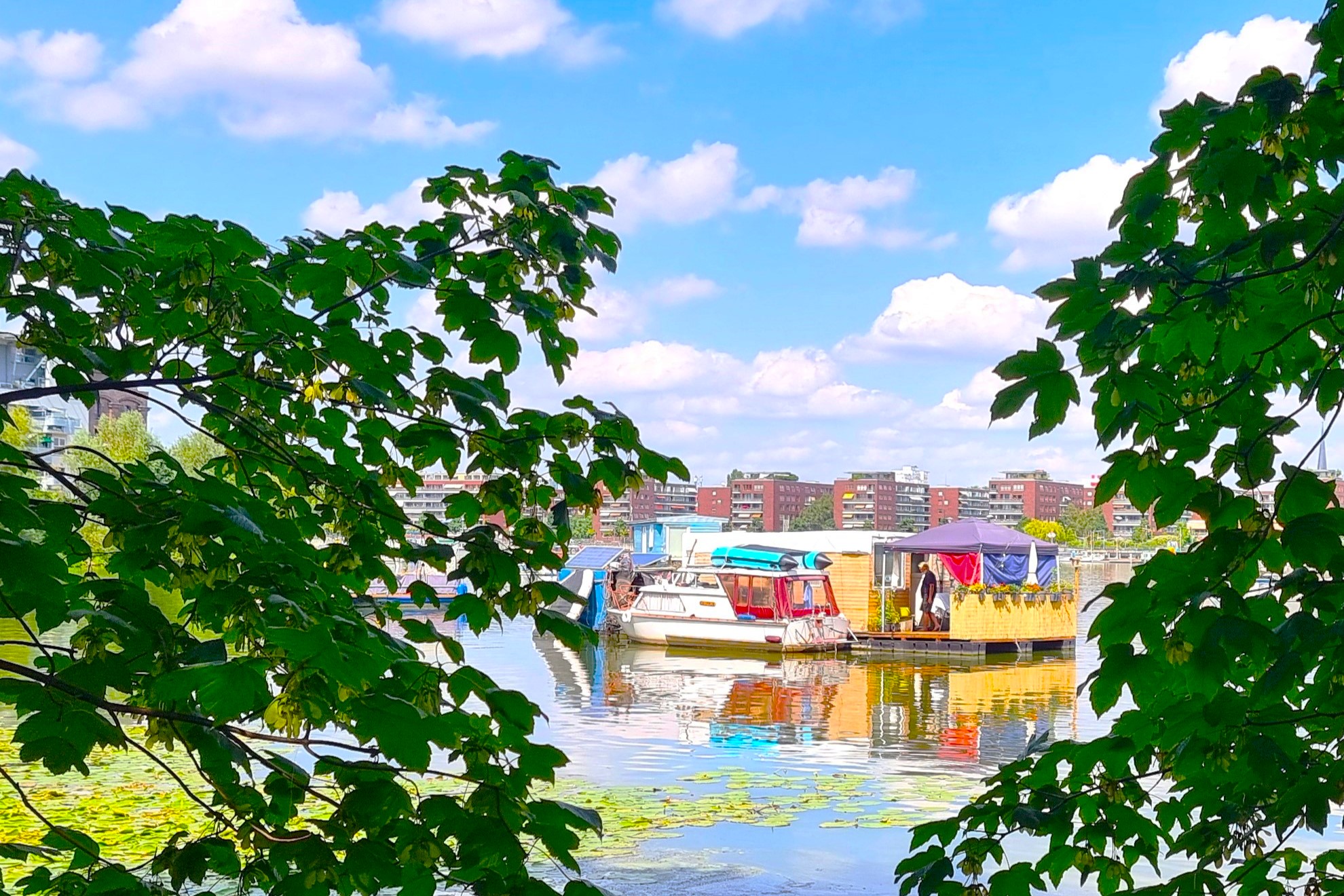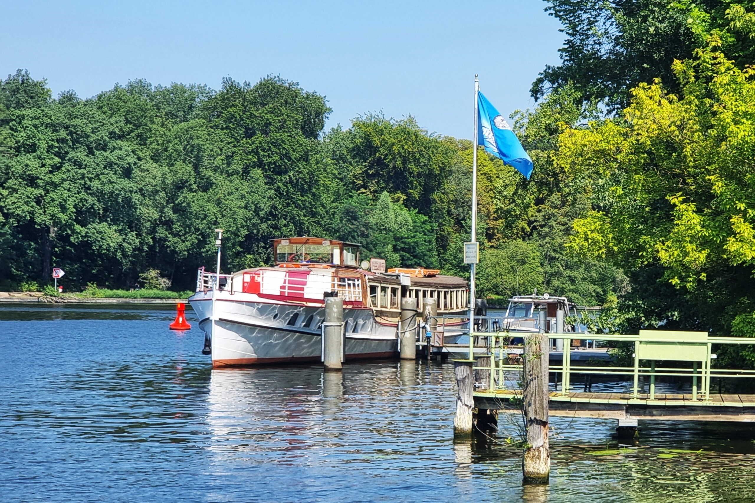 Man hat einen herrlichen Blick auf den See mit seinen vielen kleinen versteckten Buchten und auf die Lehnitzschleuse.
